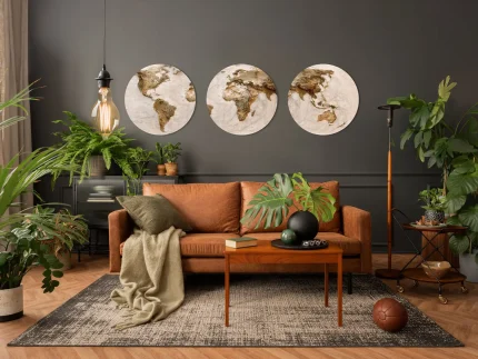 Wereldkaart drieluik & muurcirkel