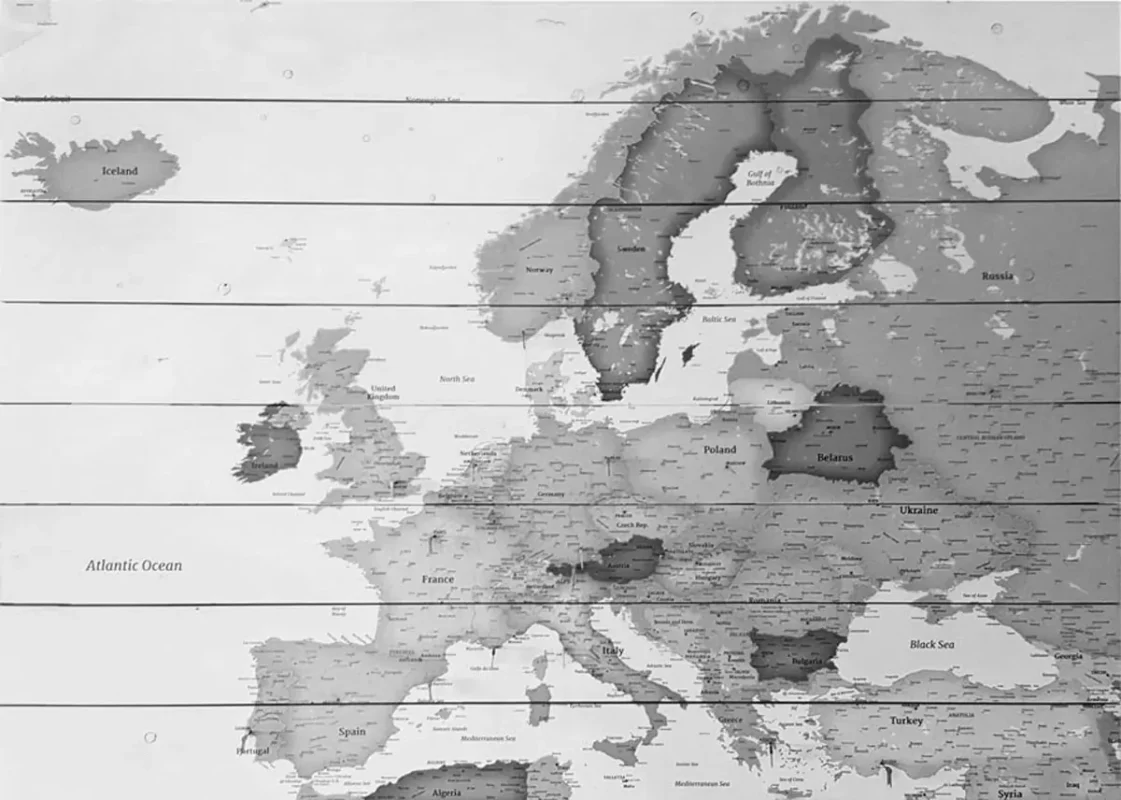 Het ingetogen voorkomen van deze kaart maakt hem tot een allemansvriend. De kaart kan zowel in een modern of vintage interieur worden ingepast. De industriële look van de Europakaart Zwart-Wit geeft jouw reisbestemmingen karakter en herinnert je aan die excursie in de Pyreneeën, urban exploring in oost-Europa of die surfvakantie in Fuerteventura.