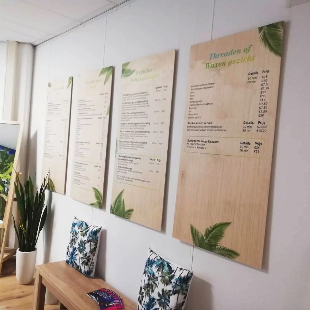 Wil je het groots aanpakken en een hele wand van hout? Bij Woodprint kan het! Laat een complete houten wand bedrukken met een levensgrote visual of ontwerp. Geef het interieur een extra dimensie, van een horecaruimte tot een vergaderruimte. Maar we kunnen ook een volledige bedrukte schutting in de tuin maken. Met een maximale hoogte van 2,50 meter en oneindige breedte, is de wand zo lang als de Chinese muur te maken.
