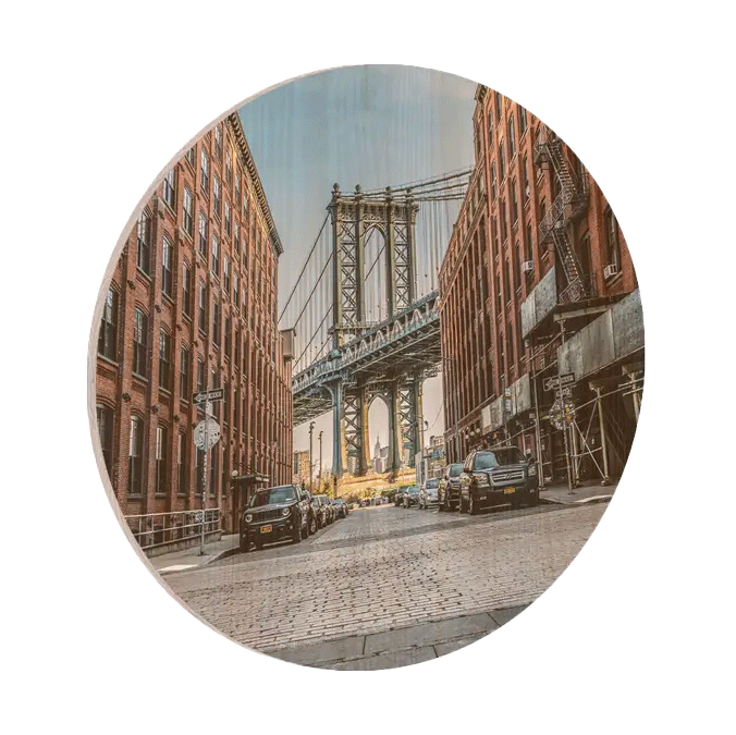Wij hebben een uniek ophangsysteem ontworpen wat zowel functioneel als stijlvol is. Door het unieke ophangsysteem lijkt de muurcirkel New York net van de muur af te zweven in plaats van recht tegen de muur te hagnen. Een bijkomend voordeel is dat het oneffenheden in de muur verbloemt en kromtrekken van de plaat op lange termijn voorkomt. Zo kun je jarenlang genieten van een prachtige Woodprint aan de muur.