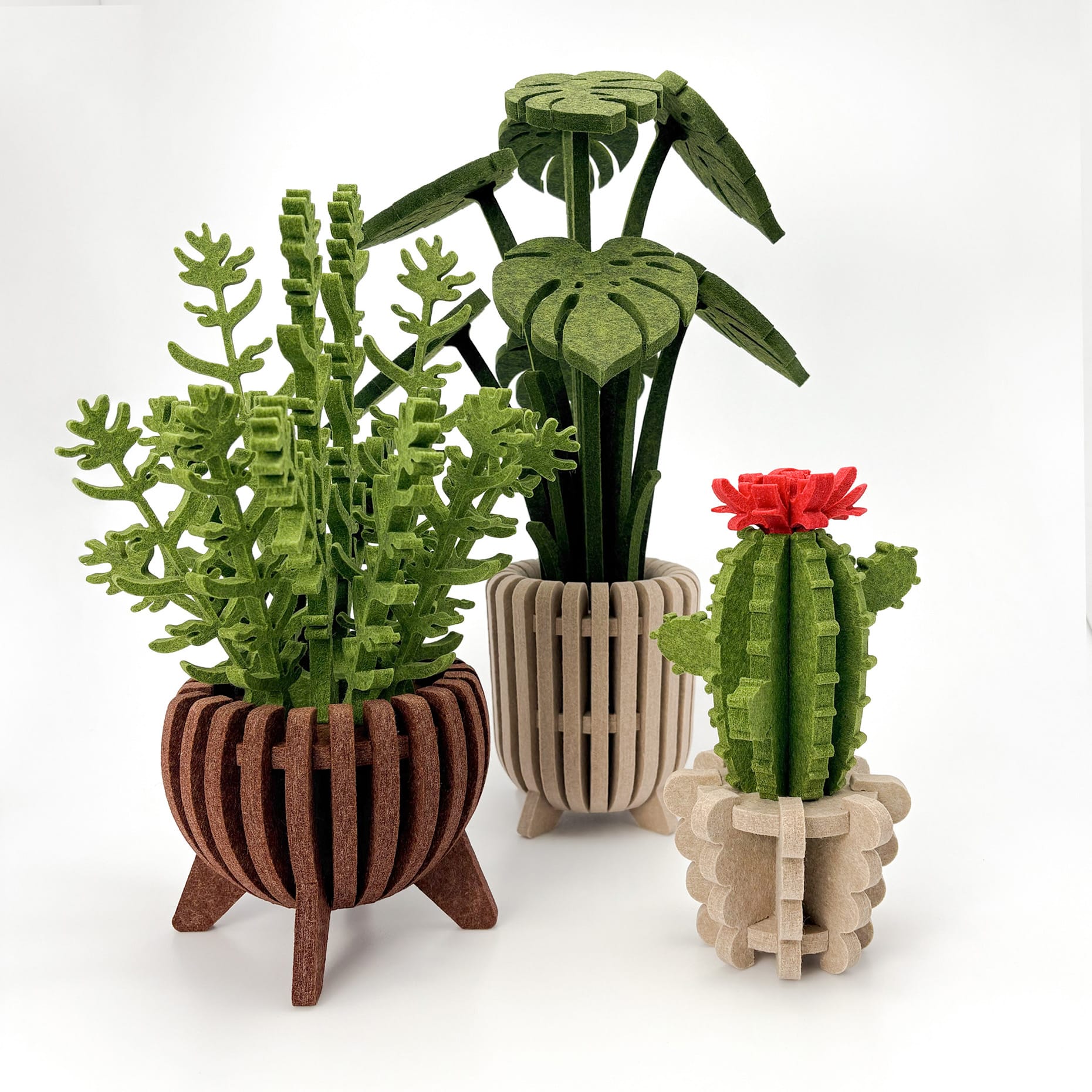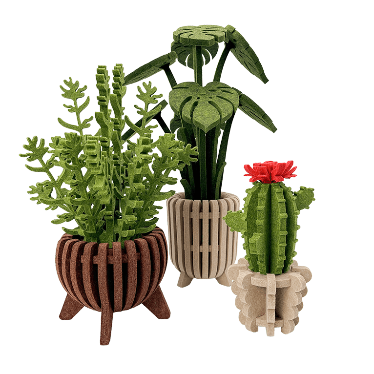 De set ReLeaf bestaat uit drie unieke plantjes met speelse vormen en verschillende bladstructuren. Van fijne vertakkingen tot grotere bladeren: samen vormen ze een levendig en dynamisch geheel. Perfect om te mixen op een plank, bureau of in een open kast.