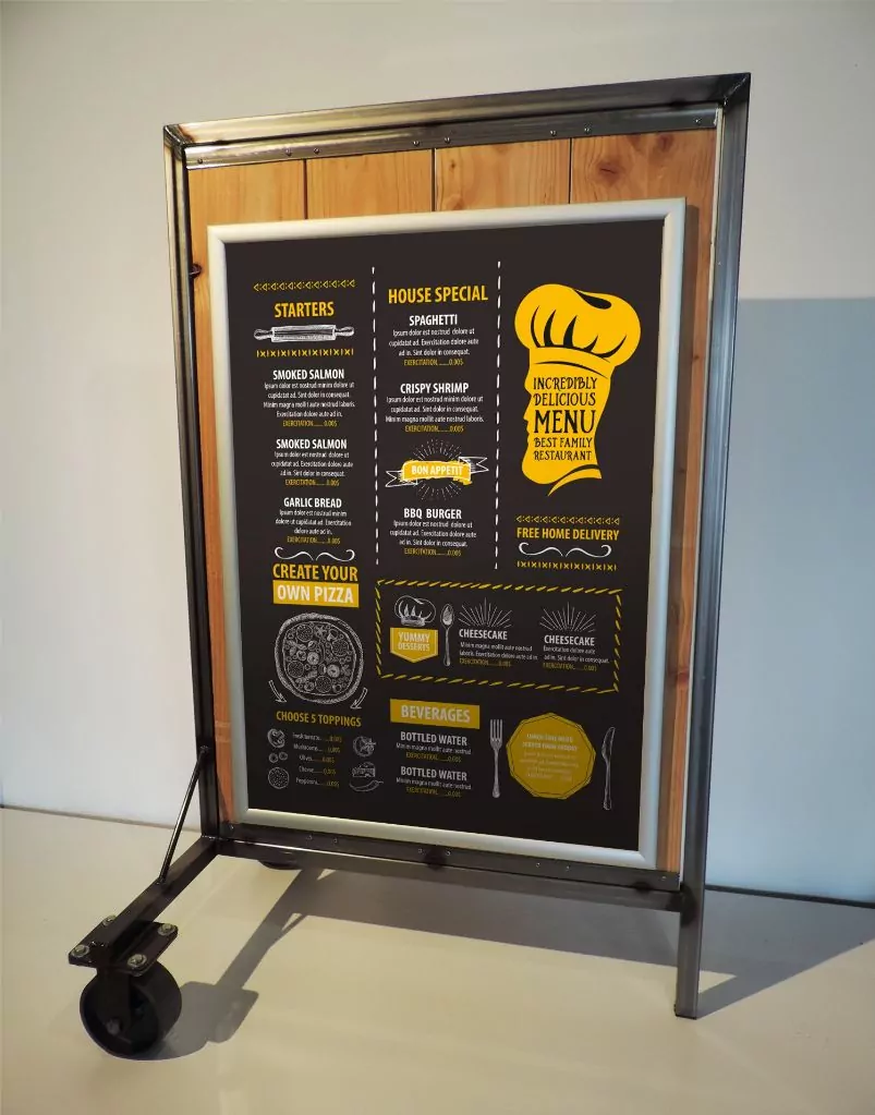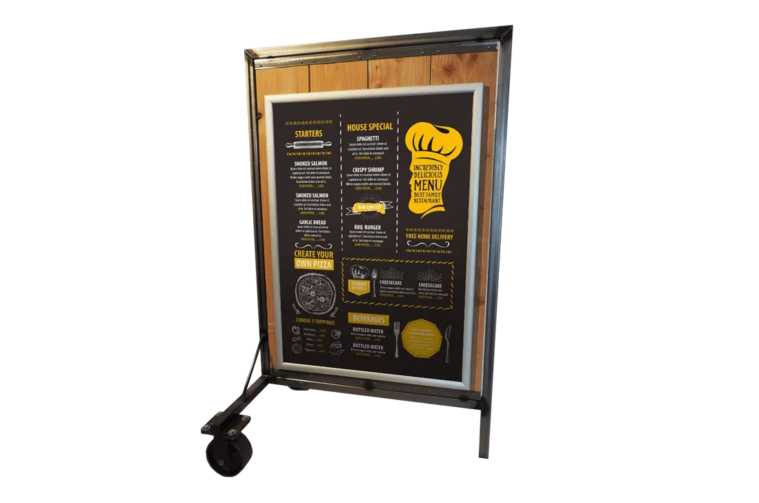 Zie je potentie in een betere plek voor uw boodschap? Dit verrijdbare stoepbord met wielen is simpelweg te verplaatsen, zonder veel kracht te gebruiken. In combinatie met het wisselbare kliksysteem speel je direct in op het juiste moment.