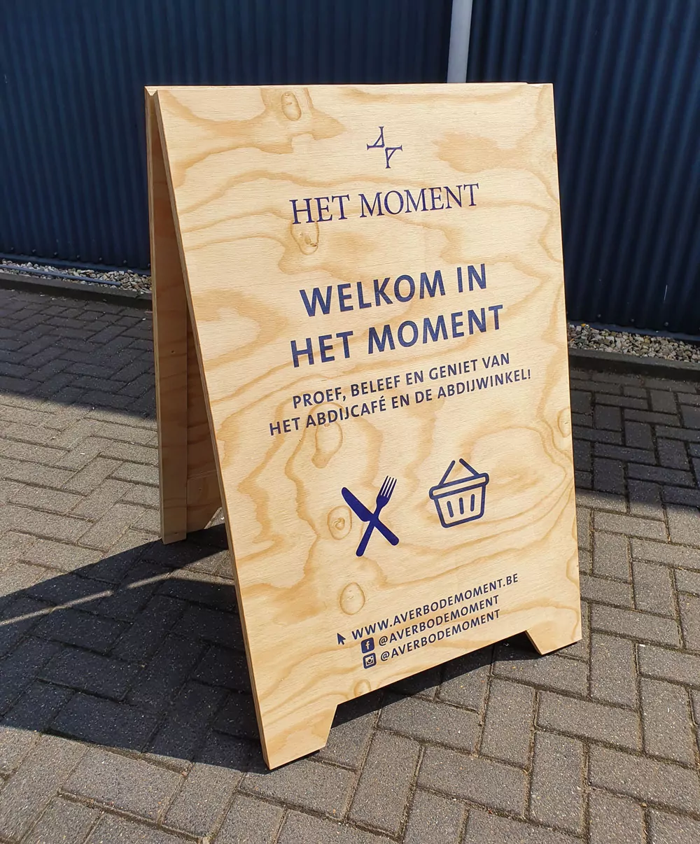 Een stoepbord van hout wordt in de meeste gevallen dubbelzijdig bedruikt. Hierdoor zien passanten vanaf 2 kanten de boodschap op het stoepbord. Wij adviseren een dubbelzijdige bedrukking, zodat beide zijden een functie heeft.