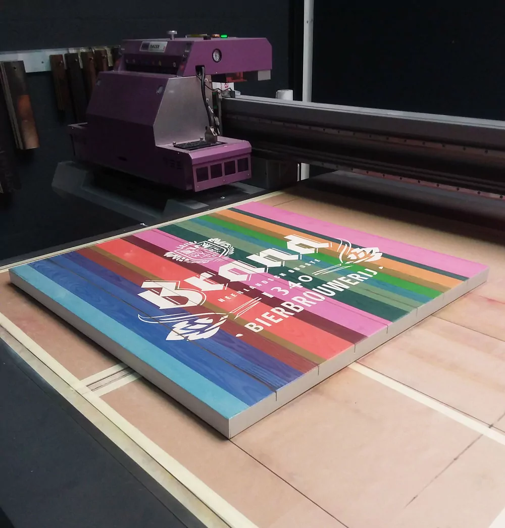 Om het ontwerp op het tafelblad te printen, maken we gebruik van een duurzame UV-printer. Dankzij het UV-licht wordt de afbeelding of foto geleidelijk op het tafelblad aangebracht. Tegelijkertijd drogen de ingebouwde UV-lampen de UV-inkt op. Een milieuvriendelijke en innovatieve printtechniek. Wil je als ondernemer een duurzame boodschap uitstralen? Dan zijn onze Woodprints een aanwinst voor jouw bedrijf.