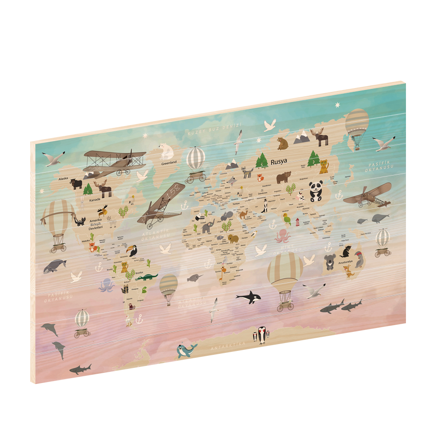 Deze houten wereldkaart is lief, leuk en leerzaam. Jouw kleintje kan zijn ogen uitkijken naar alle dieren van de wereld en waar ze wonen!