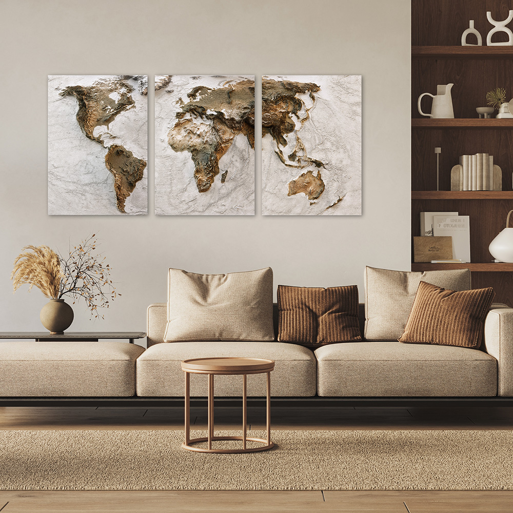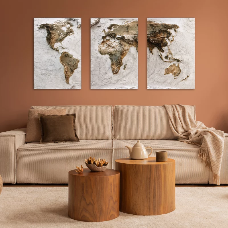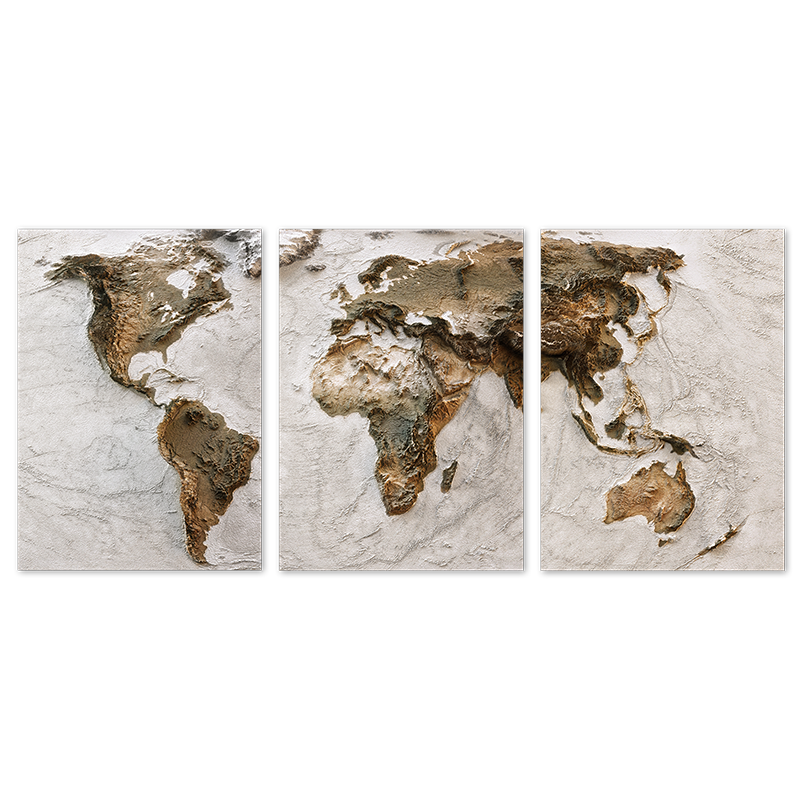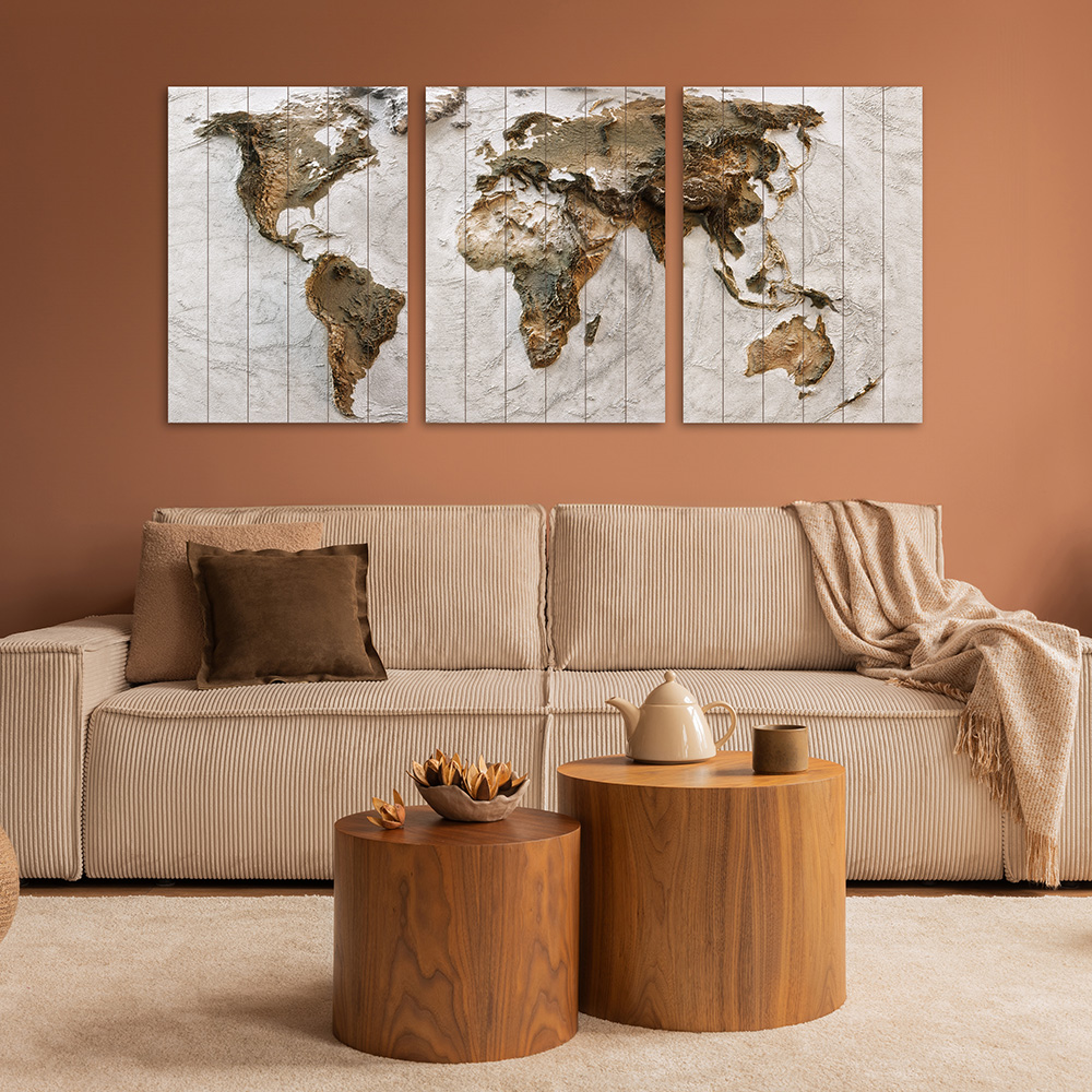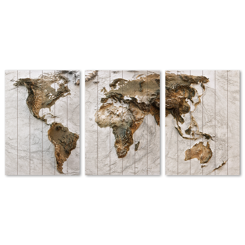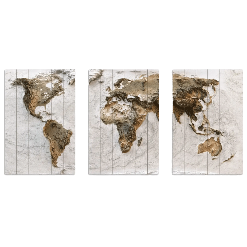 De Wereldkaart Drieluik Earth heeft een uniek ophangsysteem ontworpen wat zowel functioneel als stijlvol is. Door het unieke ophangsysteem lijkt de Wereldkaart Drieluik Earth net van de muur af te zweven in plaats van recht tegen de muur te hangen. Een bijkomend voordeel is dat het oneffenheden in de muur verbloemt en kromtrekken van de plaat op lange termijn voorkomt. Zo kun je jarenlang genieten van een prachtige Woodprint aan de muur.