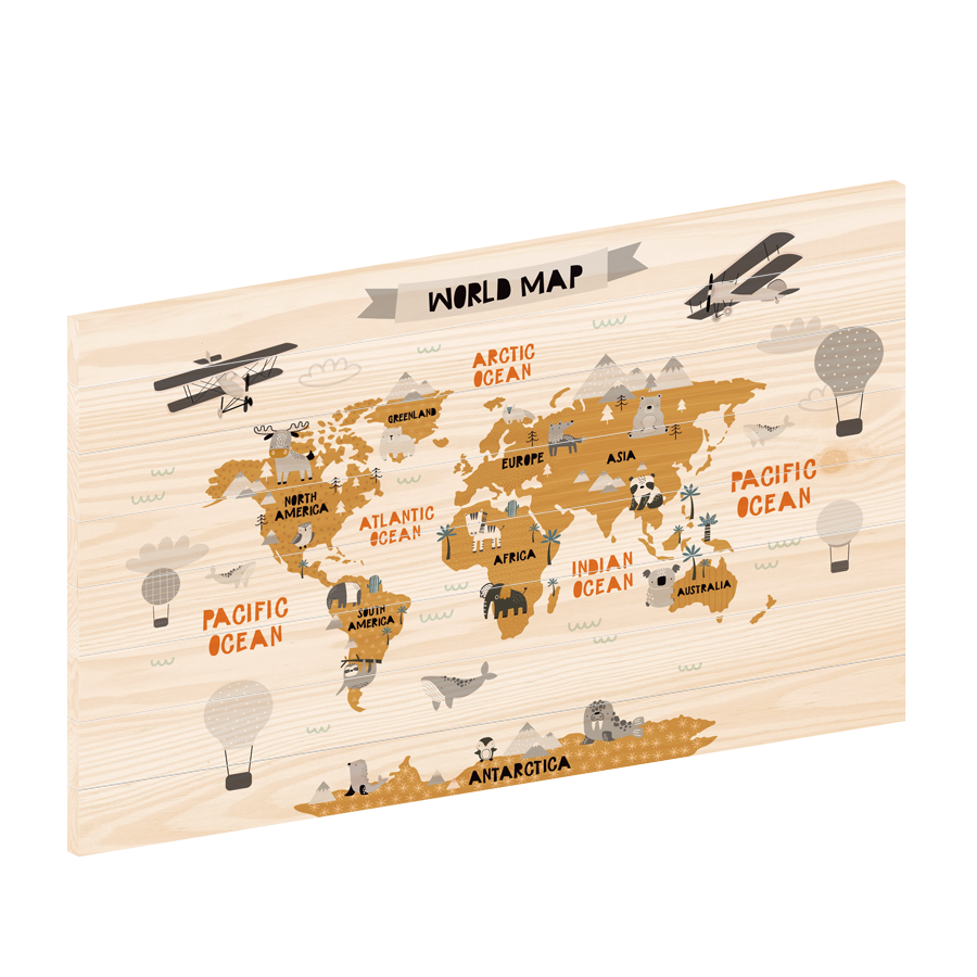 houten wereldkaart met sepia kleur is lief, leuk en leerzaam. Jouw kindje kan eindeloos kijken naar alle dieren van de wereld en waar ze wonen!