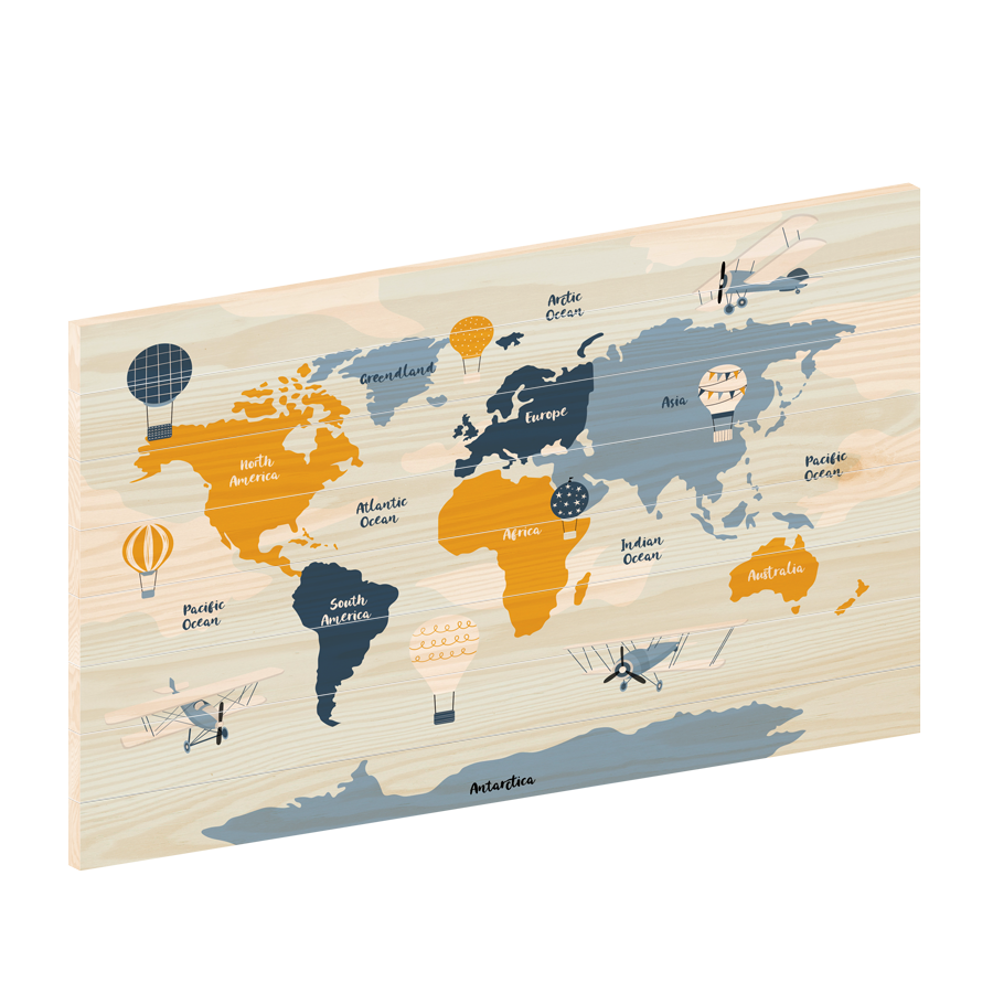 De Wereldkaart Kids Vrolijk heeft een uniek ophangsysteem ontworpen wat zowel functioneel als stijlvol is. Door het unieke ophangsysteem lijkt de wereldkaart net van de muur af te zweven in plaats van plat tegen de muur te hangen. Een bijkomend voordeel is dat het oneffenheden in de muur verbloemt en kromtrekken van de plaat op lange termijn voorkomt. Zo kun je jarenlang genieten van een prachtige Woodprint aan de muur.
