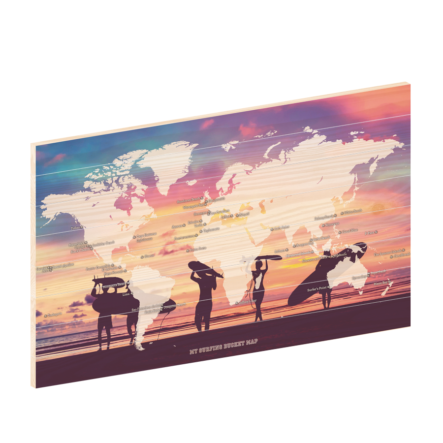 De naam verklapt het al! De Wereldkaart Surfing highlight de mooiste en bekendste surfstranden ter wereld. Een unieke aanwinst voor aan de wand voor elke surf- en watersportliefhebber.