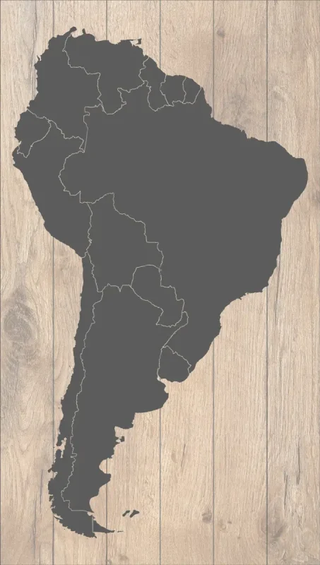 Ben je helemaal weg van Zuid Amerika? Danis dit de perfecte kaart voor jou. De Zuid Amerika Black kaart van woodpint is een continentkaart die eigenlijk wel in ieder interieur past. Maar hij komt het beste tot zijn recht in een donker of industrieel interieur waar veel houtdetails in terugkomen. Liever een complete wereldkaart in deze stijl, bekijk dan ook eens onderstaande kaarten of kies voor een wereldkaart als drieluik of muurcirkels: De kaart van Zuid Amerika Black wordt standaard geleverd met: